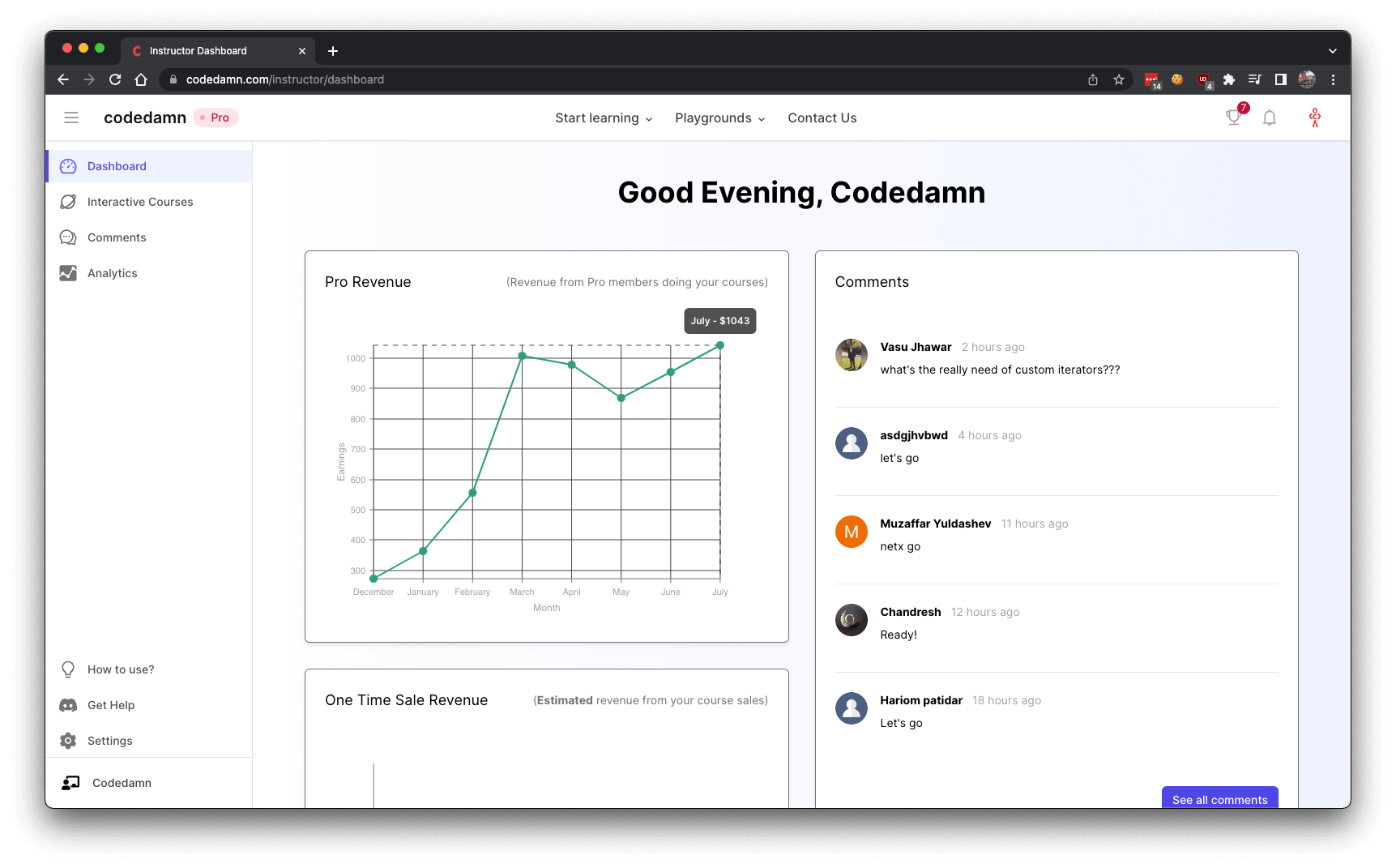 You should now be inside instructor dashboard: