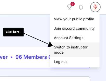Once you have signed up as an instructor, for switching to instructor dashboard, click on the user profile icon on top right: