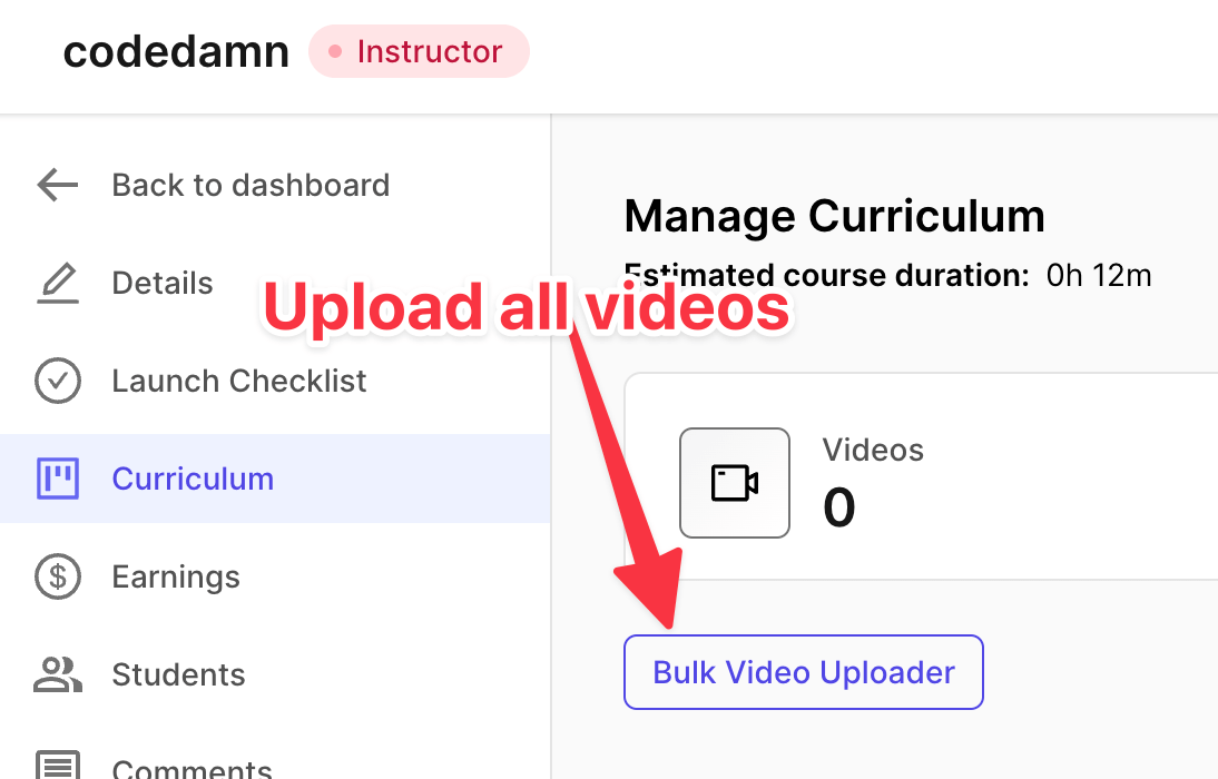 Codedamn brings its own video processing pipeline to process videos in multiple qualities for users and deliver them at scale. It is easy to upload videos inside your instructor dashboard.